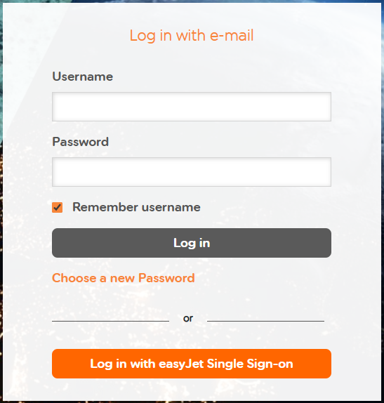 - If you do not have an easyjet.com email address, you will need to log in via the "Log in with e-mail button". If you cannot remember your password, you can click the "Choose a new Password" on the next page to reset it.